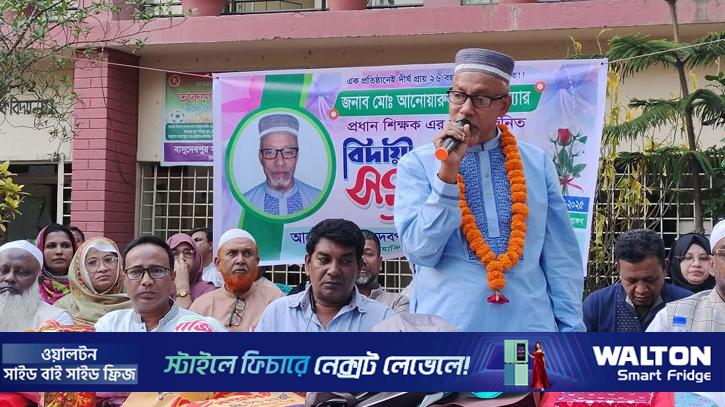 দিনাজপুরের হাকিমপুর পৌর শহরের দক্ষিণ বাসুদেবপুর সরকারি প্রাথমিক বিদ্যালয়ের প্রধান শিক্ষক মো. আনোয়ারুল হক টুকু স্যারকে রাজকীয় আয়োজনের মধ্য দিয়ে
