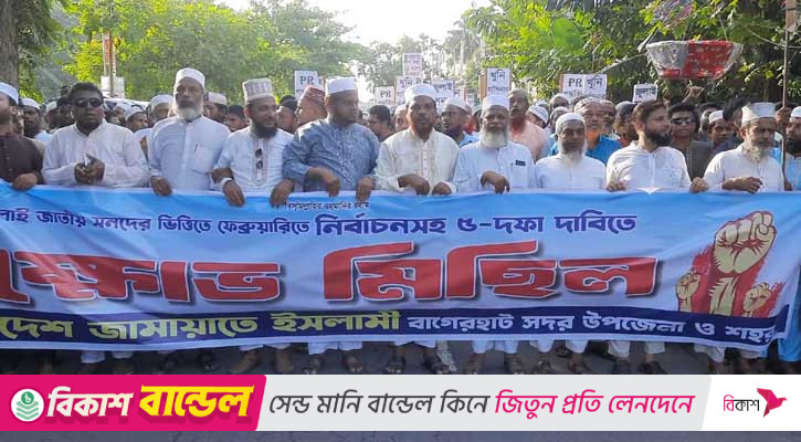 বাগেরহাট: বাগেরহাটে জুলাই সনদ বাস্তবায়ন ও পিআর পদ্ধতিতে জাতীয় নির্বাচনসহ ৫ দফা দাবিতে বিক্ষোভ মিছিল করেছে বাংলাদেশ জামায়েতে ইসলামী। শুক্রবার
